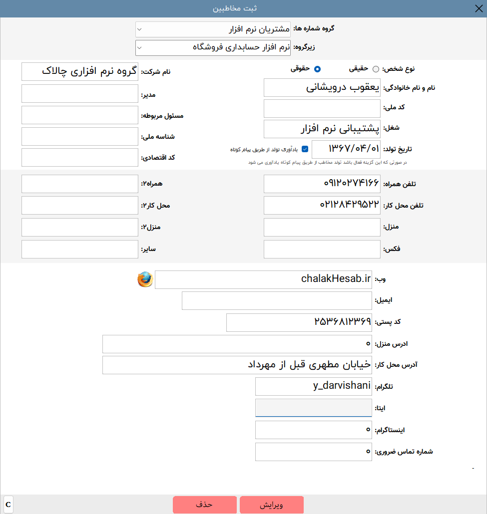 نرم افزار دفترچه تلفن چالاک با پلنهای تک کاربره ، و نسخه تحت شبکه نیازهای شما را بهطور کامل برآورده میکند، نرمافزار دفترچه تلفن حرفهای بدون هزینههای سنگین ۱۰ یا ۲۰ میلیونی با کیفیت عالی و قیمت منصفانه، بدون نیاز به اشتراک ماهانه یا سالانه و همراه با پشتیبانی تلفنی همیشگی.